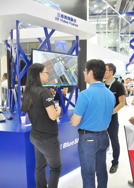 除了在人工智能領(lǐng)域的新拓展外,陳巖峰還表示,藍(lán)色星際在2016年安博會(huì)推出的融合視頻和地圖的三維視頻軟件大受關(guān)注。在去年的基礎(chǔ)上,在今年深圳安博會(huì)上藍(lán)色星際推出了基于三維地理信息的大規(guī)模視頻廣域場景三維視頻融合。