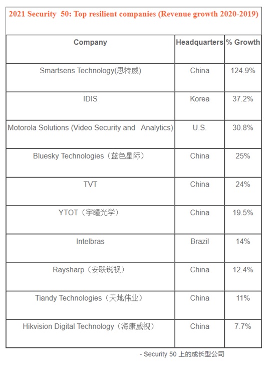 盡管面臨這些挑戰(zhàn),部分安防公司在逆境中仍然表現(xiàn)出韌性(見下表)。一些公司報告稱在此期間取得了顯著的增長。那么,他們成功的關(guān)鍵是什么?