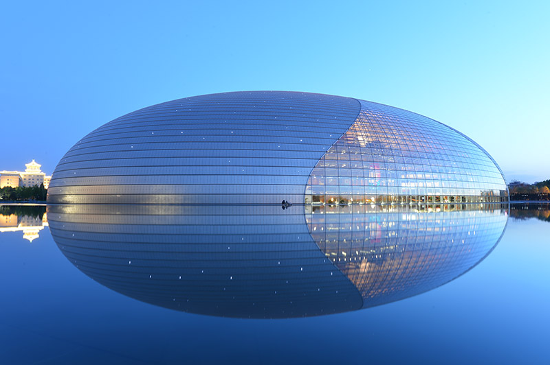 《夢開啟的地方》以國家大劇院為主視覺,勾勒出一幅宏偉建筑與唯美水波水天相接的美麗景色。劇院建筑上的灑灑燈光,如撲朔迷離的點點繁星,與遠處即將昏暗的夜空遙相呼應(yīng),攝影師通過技術(shù)處理后的平靜的水面倒映著大劇院的影像,完美再現(xiàn)了人文與自然相得益彰的華麗,使大劇院充滿了含蓄而別致的韻味與美感,使這座“城市中的劇院、劇院中的城市”猶如一顆閃亮的“水上明珠”悄然而立。該攝影作品的作者肖剛表示:“國家大劇院雖然并不是奧運場館,但由于它特別的造型、水下入場通道設(shè)計、水面配合晚間燈光效果等,使它與鳥巢、水立方都是適合拍攝燈光夜景的標(biāo)志性建筑。傍晚的國家大劇院在燈光水波的映襯下是美好的,點點星光點燃了希望和溫暖,仿佛是開啟夢想的地方”。