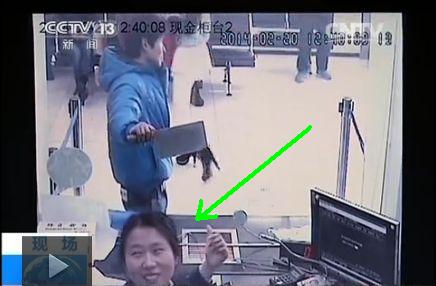 今年2月份,上海虹口區(qū)建設(shè)銀行的監(jiān)控錄下了這樣的畫面:一名身穿藍(lán)色羽絨服的男子手拿菜刀來到銀行柜臺前聲稱要搶劫,隨后被人從后面輕松制服。在此過程中,柜臺后的女銀行職員非但沒有驚慌失措,反而被男子的行為逗笑!一時間,“上海男子持菜刀搶劫銀行 女柜員被逗笑”的新聞被廣泛傳播開來。人們對銀行女職員“瞇眼而笑”的畫面留下了印象深刻!